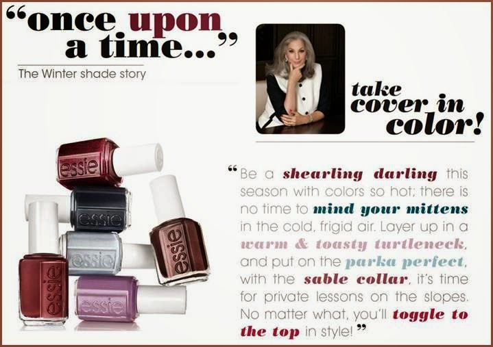 I love the story behind each of the shades and how Essie herself was inspired to create them. As you know I hate winter, but Essie makes it sound so desirable I want to believe it! Each shade was inspired by Essie’s experience last winter and it all sounds so dreamy: a holiday in Aspen, skiing of the top of the mountains and a weekend getaway to a country home covered in snow.